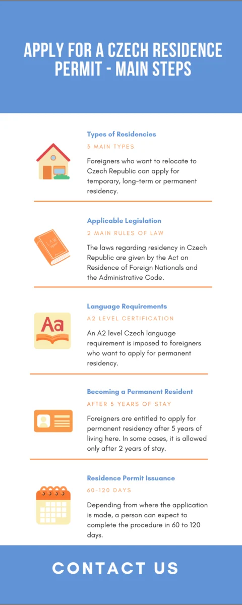 In the infographic below, we invite those who want to apply for a Czech residence permit in 2026 to discover the main steps involved in the procedure: